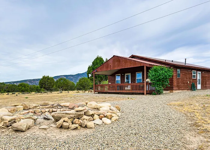 Situated a 10-minute ride from Labo Del Rio Bridge, the family Quiet Cabin With Mtn View And Deck 7 Mi To Navajo Lake invites guests to relax at a patio.